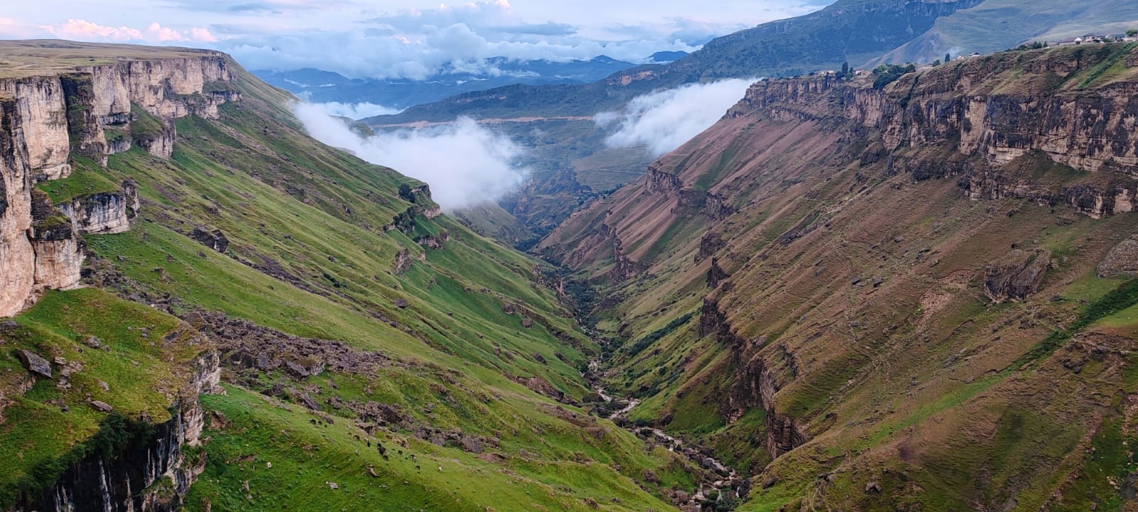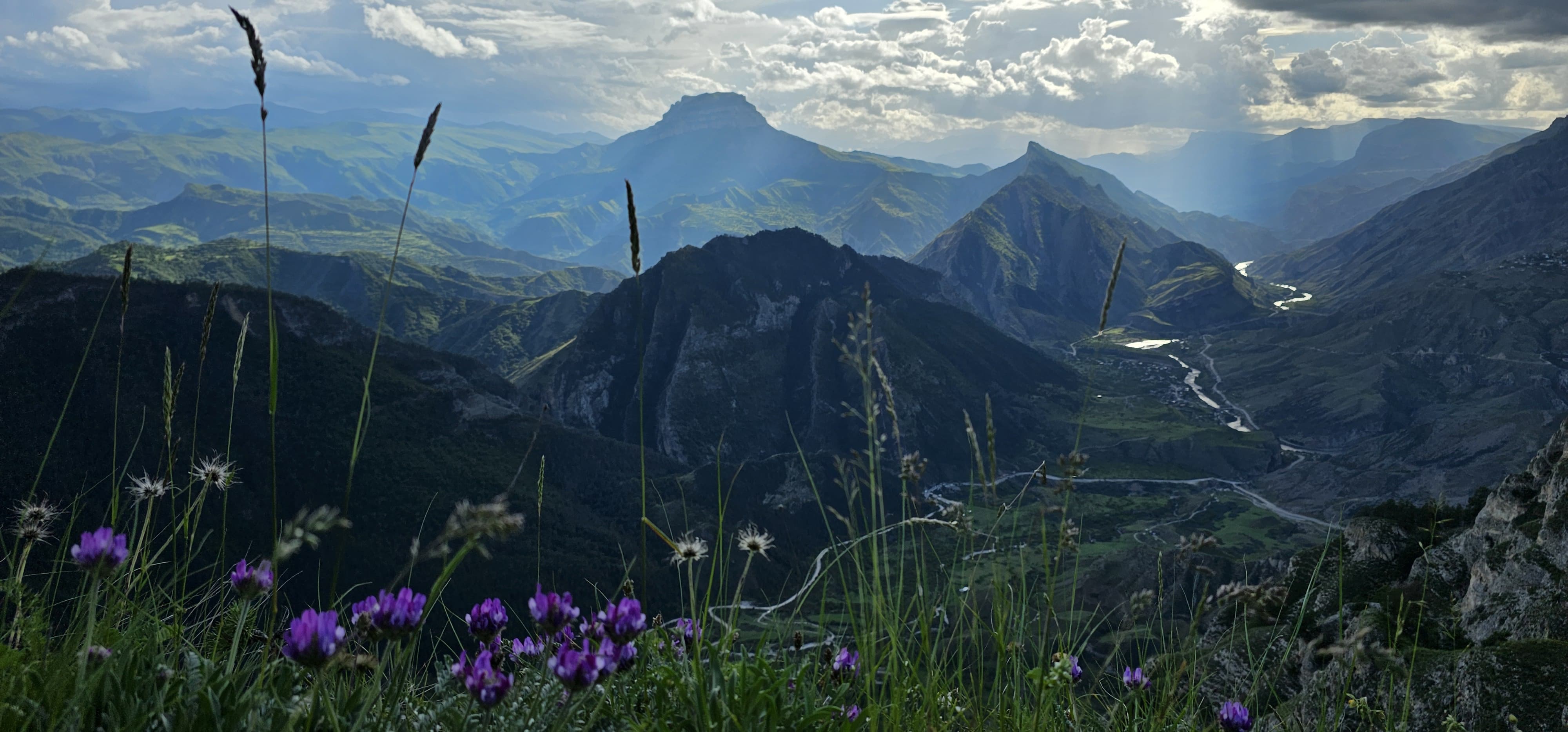 • Прекрасный  вид с базы Матлас на границу Чечни, Матласские водопады, каскад водопадов